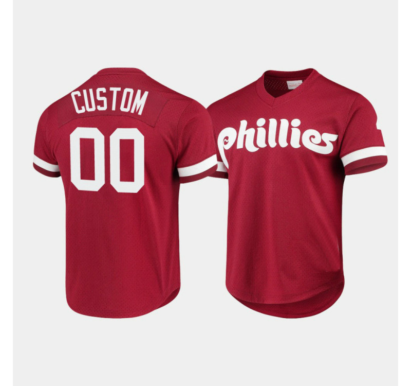 - Men's Phillies #00 Custom Cooperstown Collection Mesh Batting Practice Scarlet Jersey