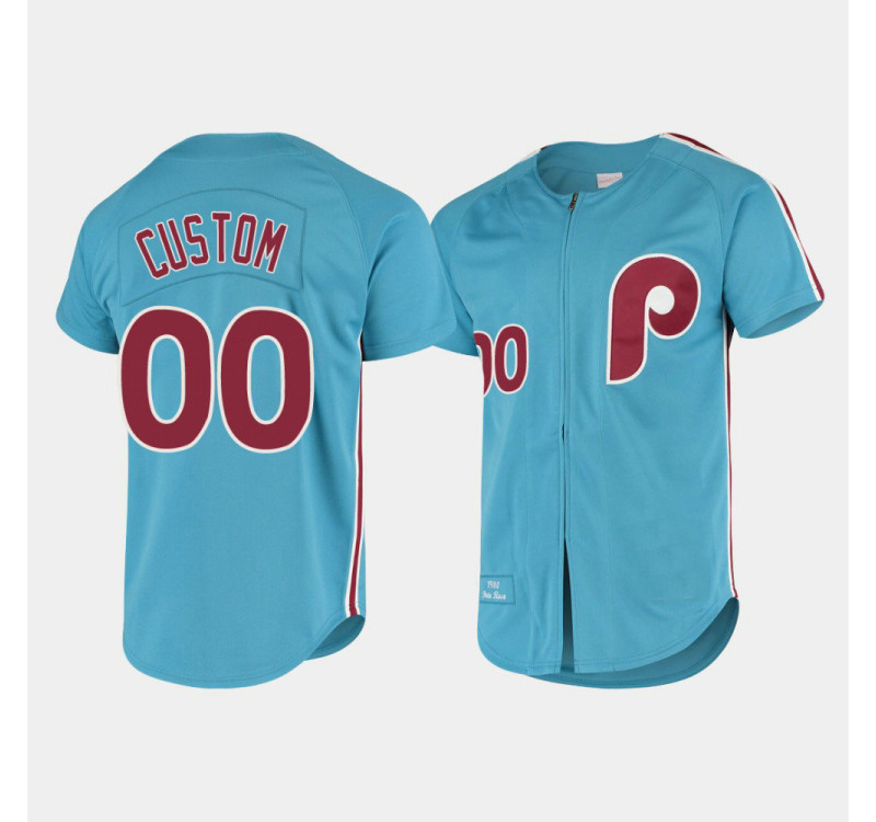 - Men's Phillies #00 Custom Light Blue Cooperstown Collection Mitchell & Ness Authentic Jersey