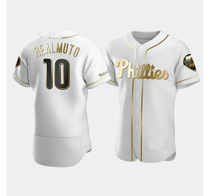 - Men's Phillies #10 J.T. Realmuto White Golden Edition Authentic Jersey
