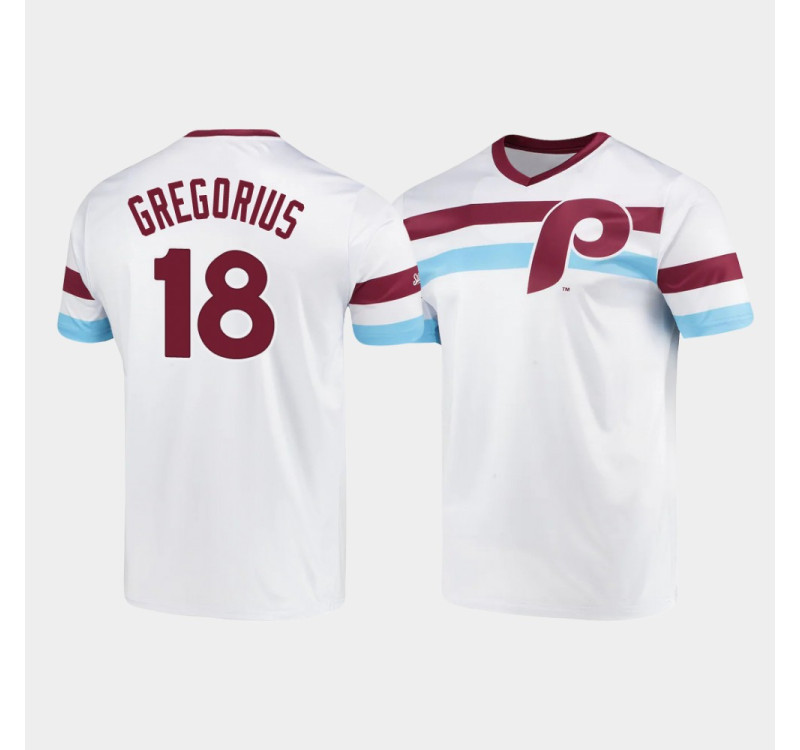 - Men's Phillies #18 Didi Gregorius White Cooperstown Collection V-Neck Jersey