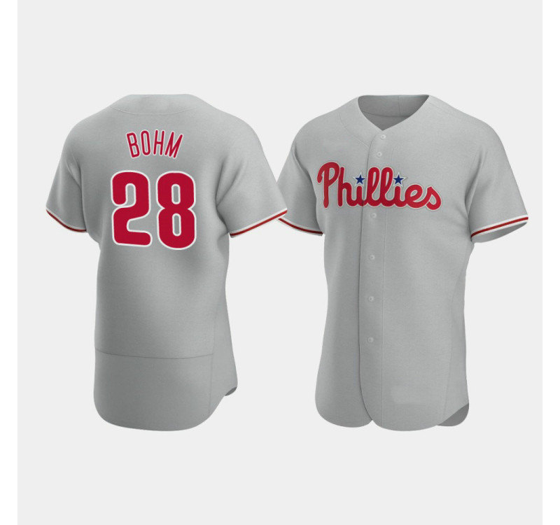 - Men's Phillies #28 Alec Bohm Gray Authentic 2020 Road Jersey