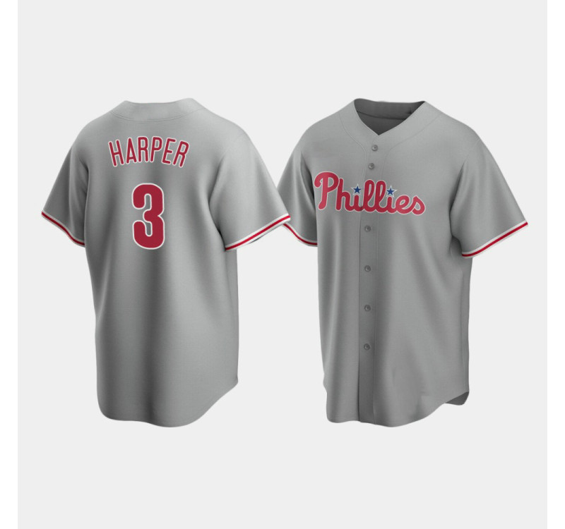 - Men's Phillies #3 Bryce Harper Gray Replica Road Jersey