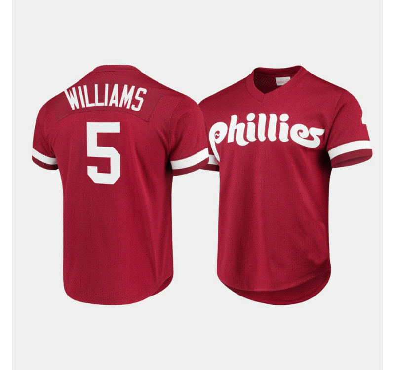 - Men's Phillies #5 Nick Williams Cooperstown Collection Mesh Batting Practice Scarlet Jersey