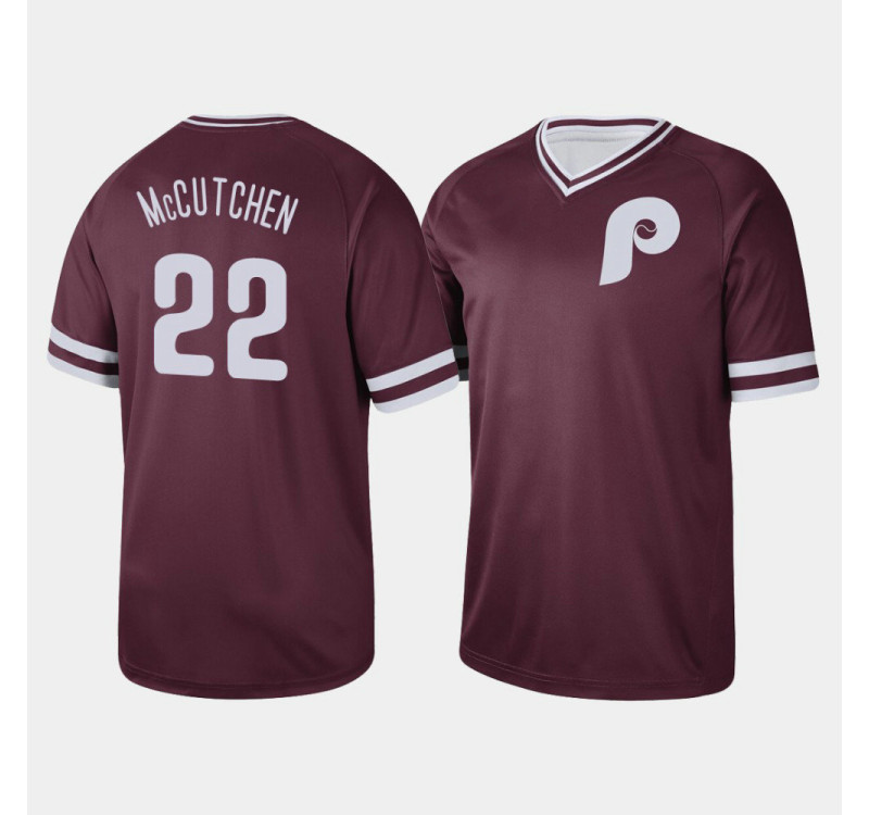 - Men's Phillies Andrew McCutchen #22 Maroon Cooperstown Collection V-Neck Legend Jersey