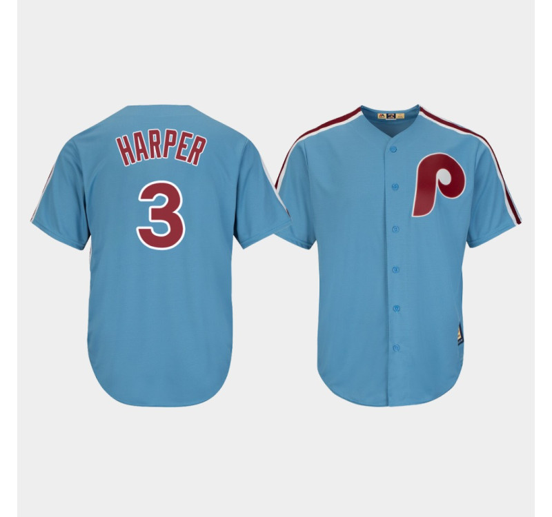- Men's Phillies Bryce Harper #3 Light Blue Cooperstown Cool Base Jersey