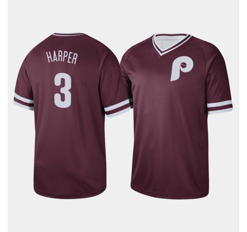 - Men's Phillies Bryce Harper #3 Maroon Cooperstown Collection V-Neck Legend Jersey