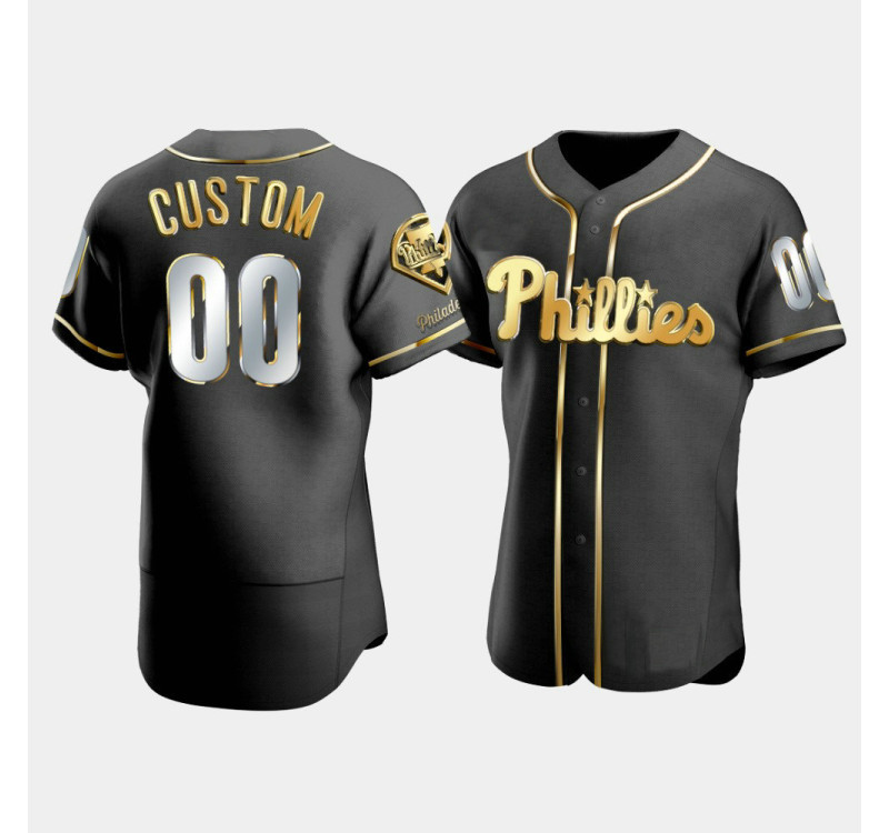 - Men's Phillies Custom #00 Black Golden Edition Authentic Jersey