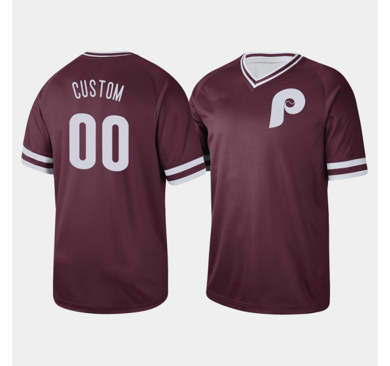 - Men's Phillies Custom #00 Maroon Cooperstown Collection V-Neck Legend Jersey