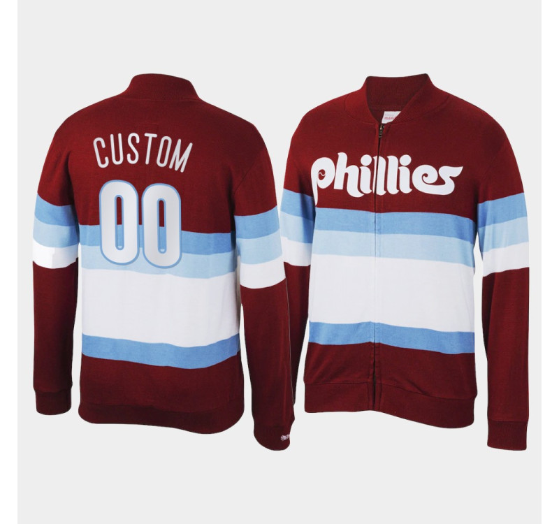 - Men's Phillies Custom Burgundy Front Stripe Mitchell & Ness Full-Zip Sweater