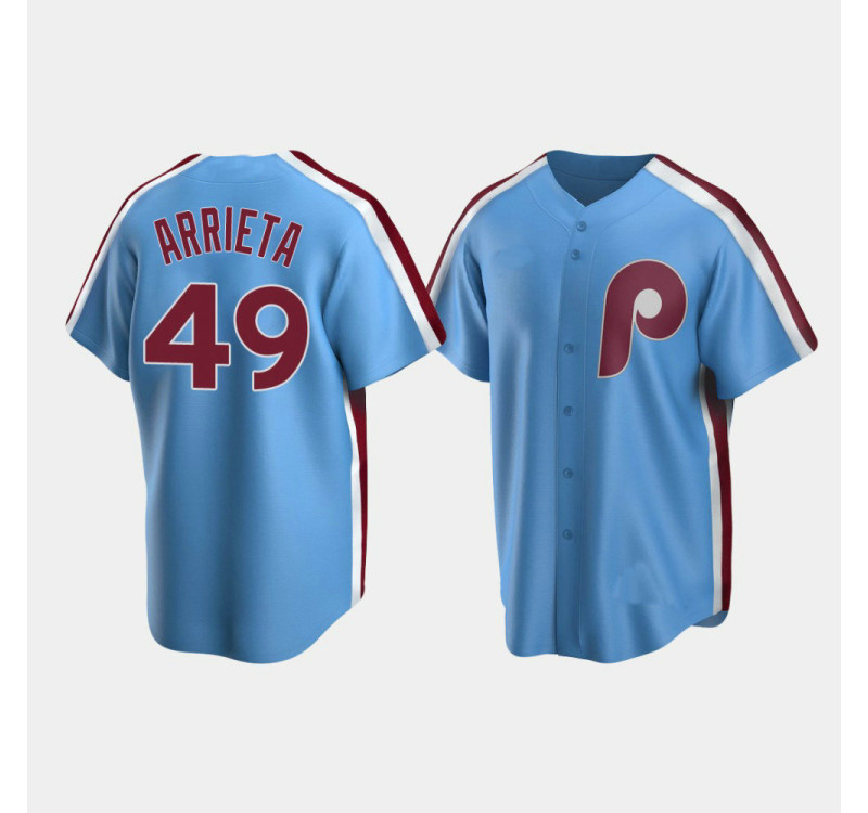 - Men's Phillies Jake Arrieta #49 Light Blue Cooperstown Collection Road Jersey