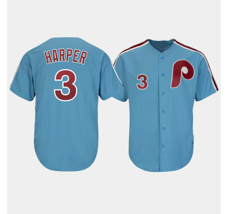 - Phillies #3 Bryce Harper Cooperstown Collection Cool Base Light Blue Alternate Jersey Men's
