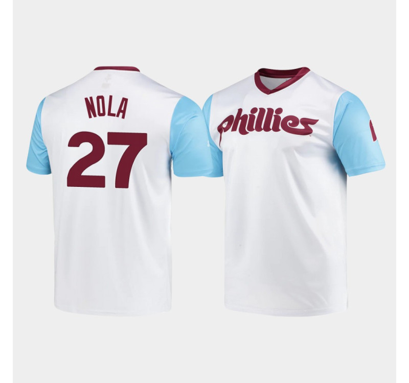 • Men's Phillies Aaron Nola White Cooperstown Collection V-Neck Wordmark Jersey