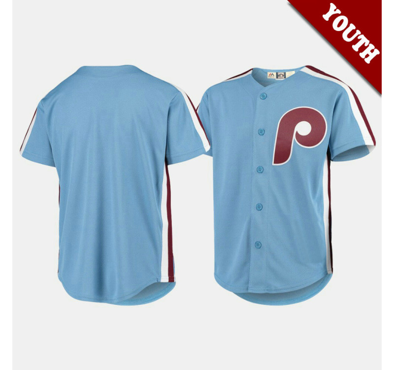 - Phillies Cooperstown Collection Cool Base Light Blue Majestic Replica Jersey Youth