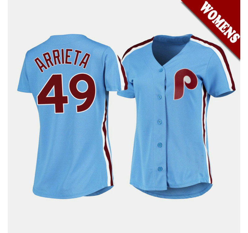 - Women's Phillies Jake Arrieta #49 Light Blue Cooperstown Collection Road Jersey