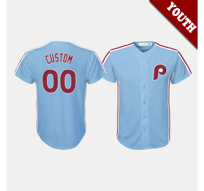 Youth Philadelphia Phillies #00 Custom Cooperstown Collection Road Light Blue Jersey