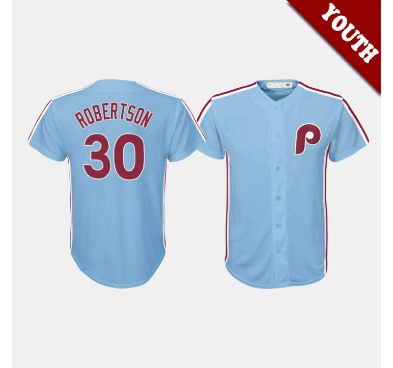 - Kid's Phillies #30 David Robertson Cooperstown Collection Road Light Blue Jersey