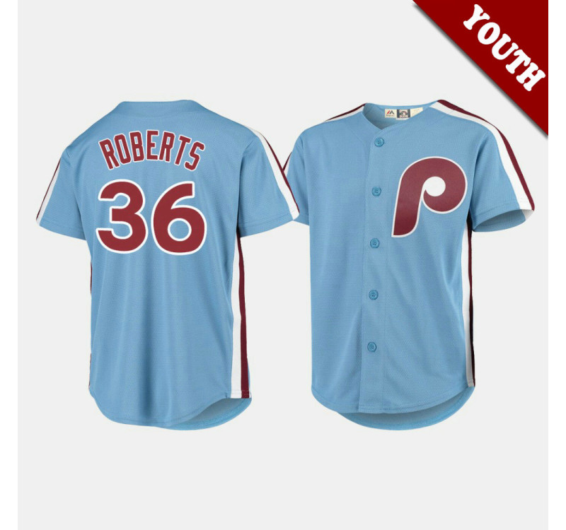 - Kid's Phillies Robin Roberts #36 Light Blue Cooperstown Collection Replica Cool Base Jersey