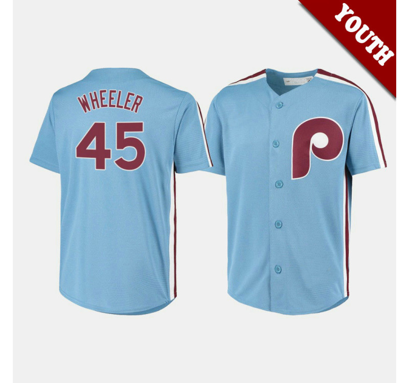 - Kid's Phillies Zack Wheeler #45 Light Blue Cooperstown Collection Road Jersey