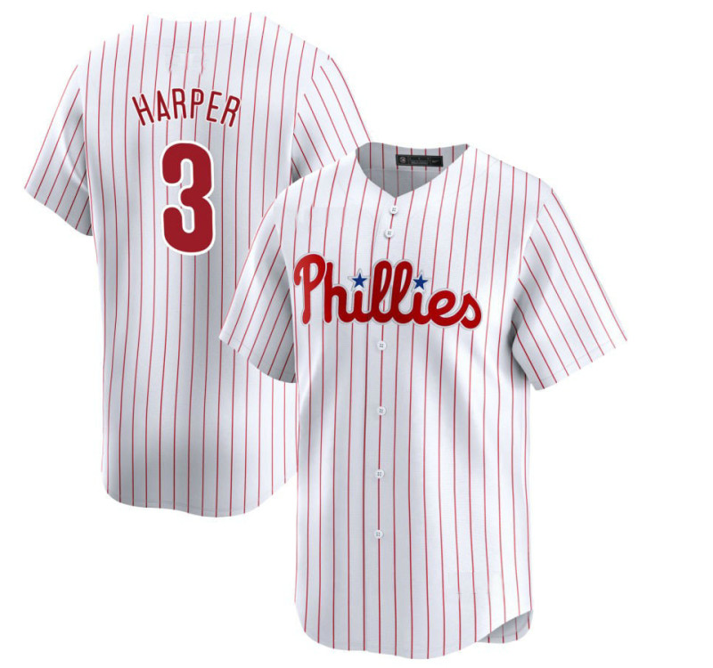 - Bryce Harper #3 Phillies Home Jersey - White Limited
